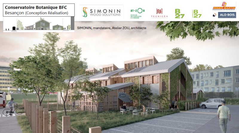 – le Conservatoire Botanique BFC à Besançon dont le concours vient d’être gagné par une équipe ROBIN.S en conception-réalisation (Mandataire : SIMONIN Wood Solutions , architecte : atelier—ZOU).